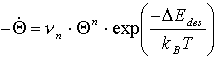 Betrachtet wird (durch Thermodesorptionsspektroskopie) der Vorgang der durch thermische Energie kBT induzierten Desorption in einem Temperaturbereich vom Einsetzen bis zum Abklingen des Vorganges (etwa 950K bis 1200K). Zu Beginn der Desorption ist die Bedeckung gleich der Anfangsbedeckung QML=Q0 und nimmt während des Prozesses ab, bis kein Teilchen mehr auf der Substratoberfläche vorhanden ist. Die Energie, die aufgebracht werden muß, damit ein (Mol) Teilchen desorbiert, ist die Desorptionsenergie DEdes.