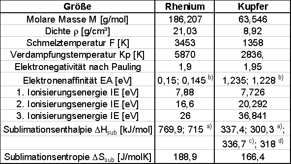 1.1 Die Metalle Rhenium und Kupfer